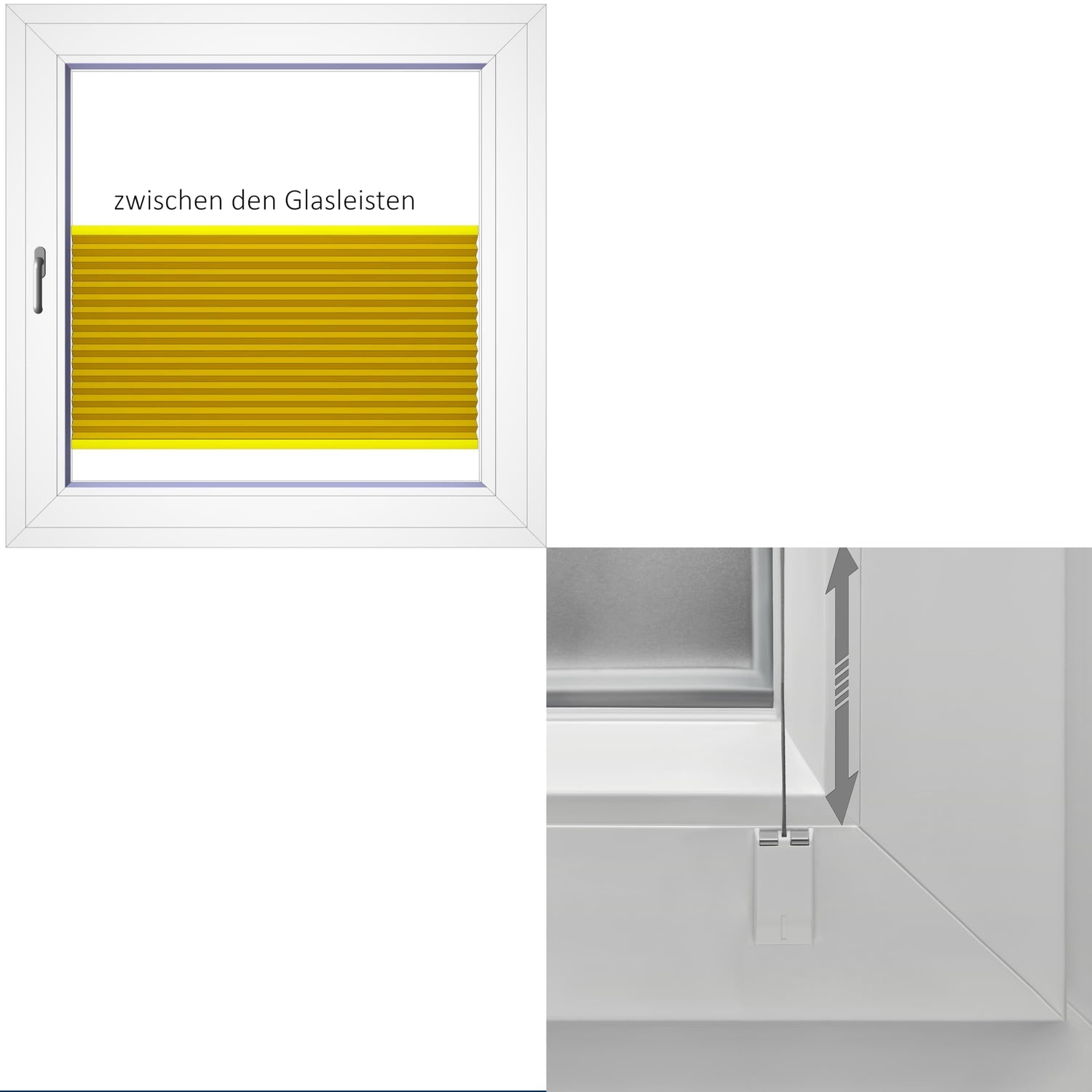 Befestigung auf dem Fensterrahmen (Behang zwischen den Glasleisten)